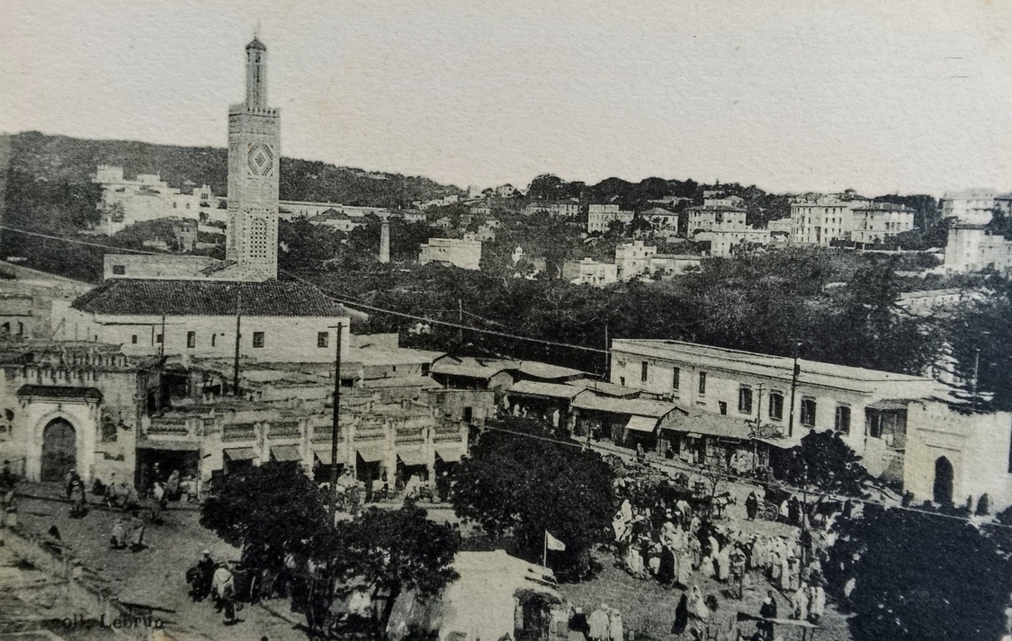 Tanger, Minaret en Moskee - Omgeving met Minaret van Sidi Bouabid Moskee - Grand Socco,