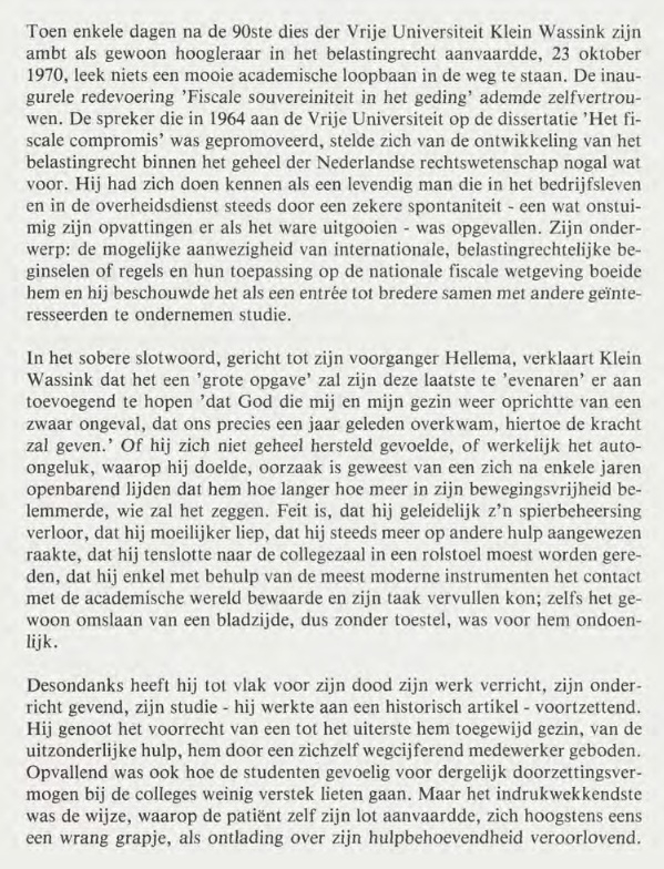 Klein Wassink was een invloedrijke figuur binnen het Nederlands Fiscaal Recht.