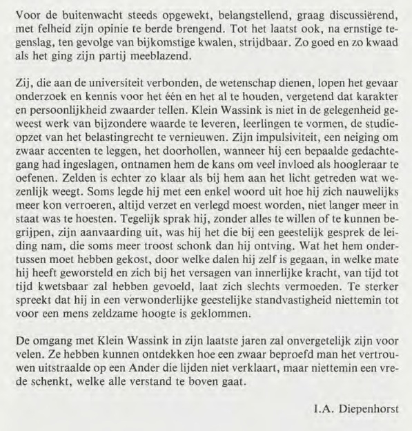 Ter nagedachtenis aan Prof. Dr. Mr. H.J.W. Klein Wassink